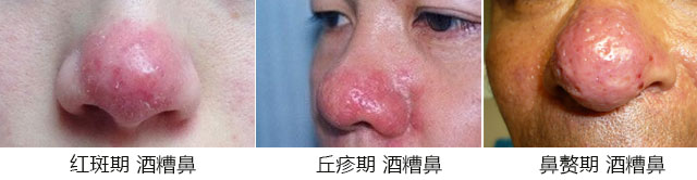 1、红斑期:鼻部出现红斑,尤其在刺激性饮食、外界温度突然改变及精神兴奋时更为明显,自觉灼热。