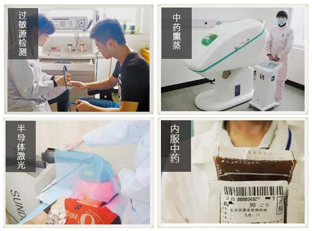 中药内调:针对不同类型过敏人群,采用抗敏固表、滋阴养血、祛风除湿等功效的中药内调。达到恢复皮肤生态平衡、提高免疫力的效果。